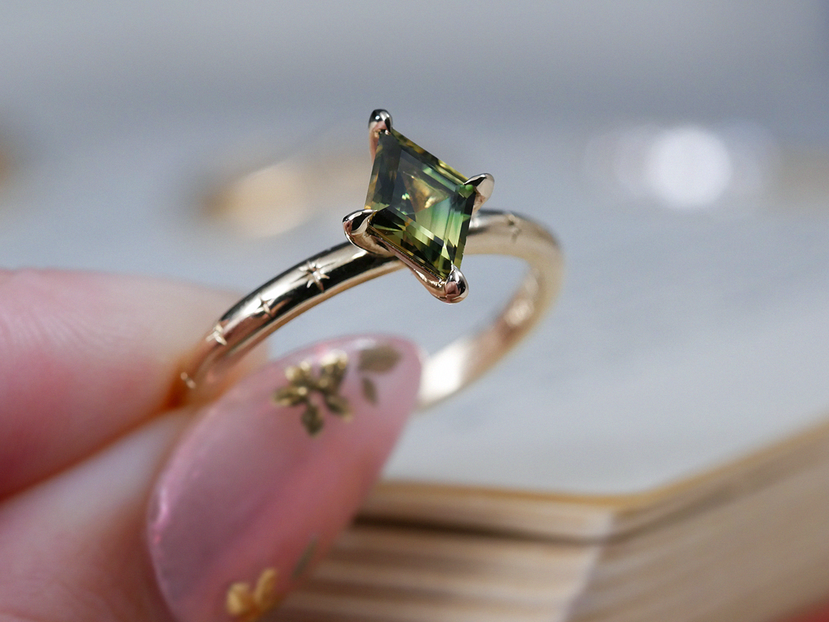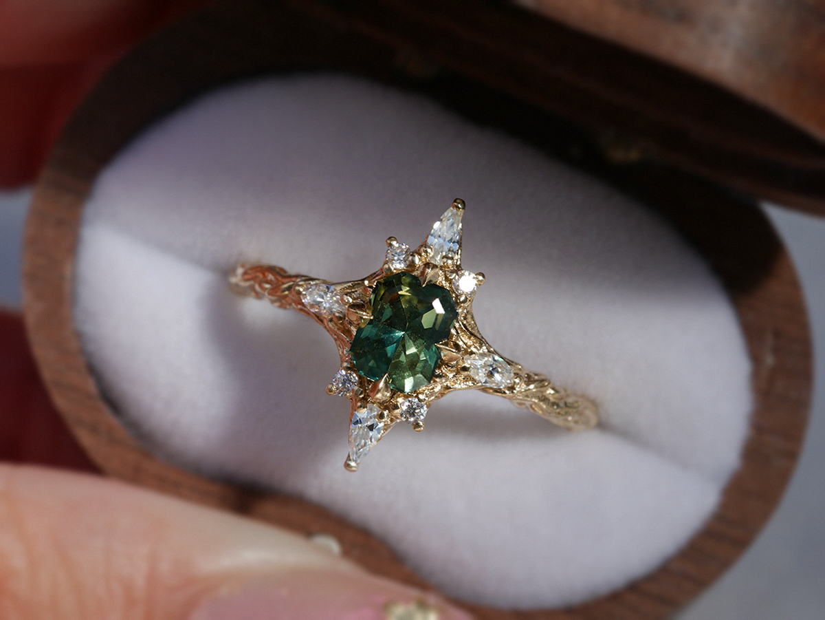 Cornflower Blue Sapphire North Star Ring, Platinum