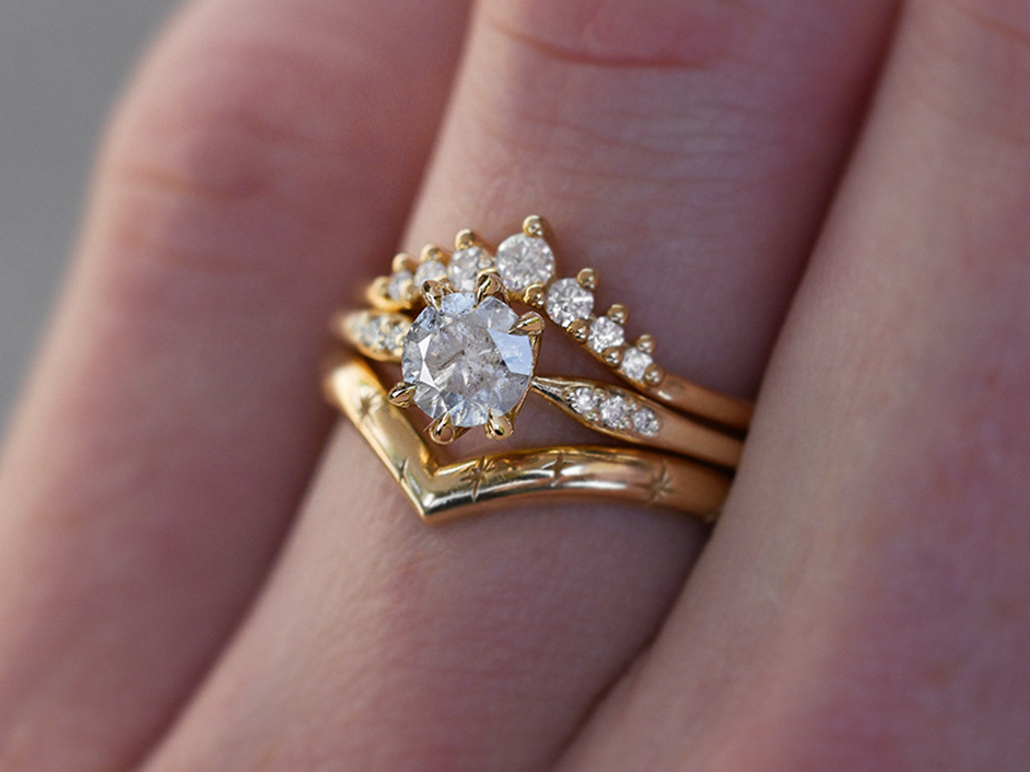 Salt & Pepper Diamond Hexagon Astra VI Ring